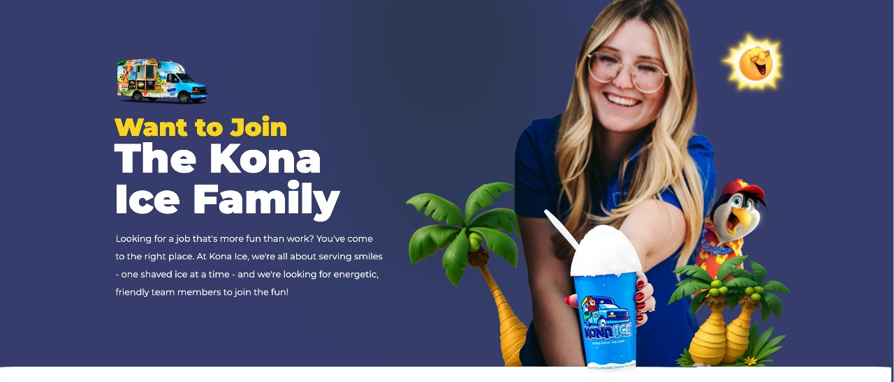 If you love having fun, eating Kona Ice, and making people smile, then this is the perfect job for you! Find opportunities in your area below or scroll to learn more about working at Kona Ice!