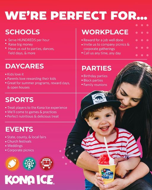 Aloha! We're Anthony & Lissa, owners of Kona Ice NJ since 2009. Serving Mercer & surrounding counties in NJ. Treat your taste buds to the most amazing flavored shaved ice this side of the islands! The Kona Ice experience will amplify any event big or small. From our steel drum music to the Flavorwave-where guests can add their own flavors. We bring the fun, laughter and flavor to your event including; schools, corporate, daycares, summer camp, picnic, wedding, sport & festivals. We also specialize in fundraising, so just show us where to park & who to make the check out to! We can serve hundreds of people per hour. CONTACT US TODAY!